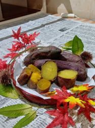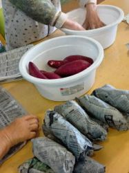 まずは利用者さまにお手伝いいただき、先日収穫したさつまいもを濡らした新聞紙にくるみ、さらにアルミホイルで丁寧に包みます。作業を分担しながら、皆さま手際よく進めてくださいました。準備を終えたお芋をドラム缶でじっくり焼き上げると…甘みがぎゅっと詰まった、しっとりホクホクの焼き芋に変身! 自然な甘さに、みなさま笑顔でおいしそうに召し上がっておられました♪