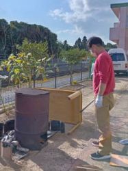 華城デイサービスでは、秋の恒例行事“ドラム缶で焼くやきいも”、「ドラ焼き芋」を開催しました。